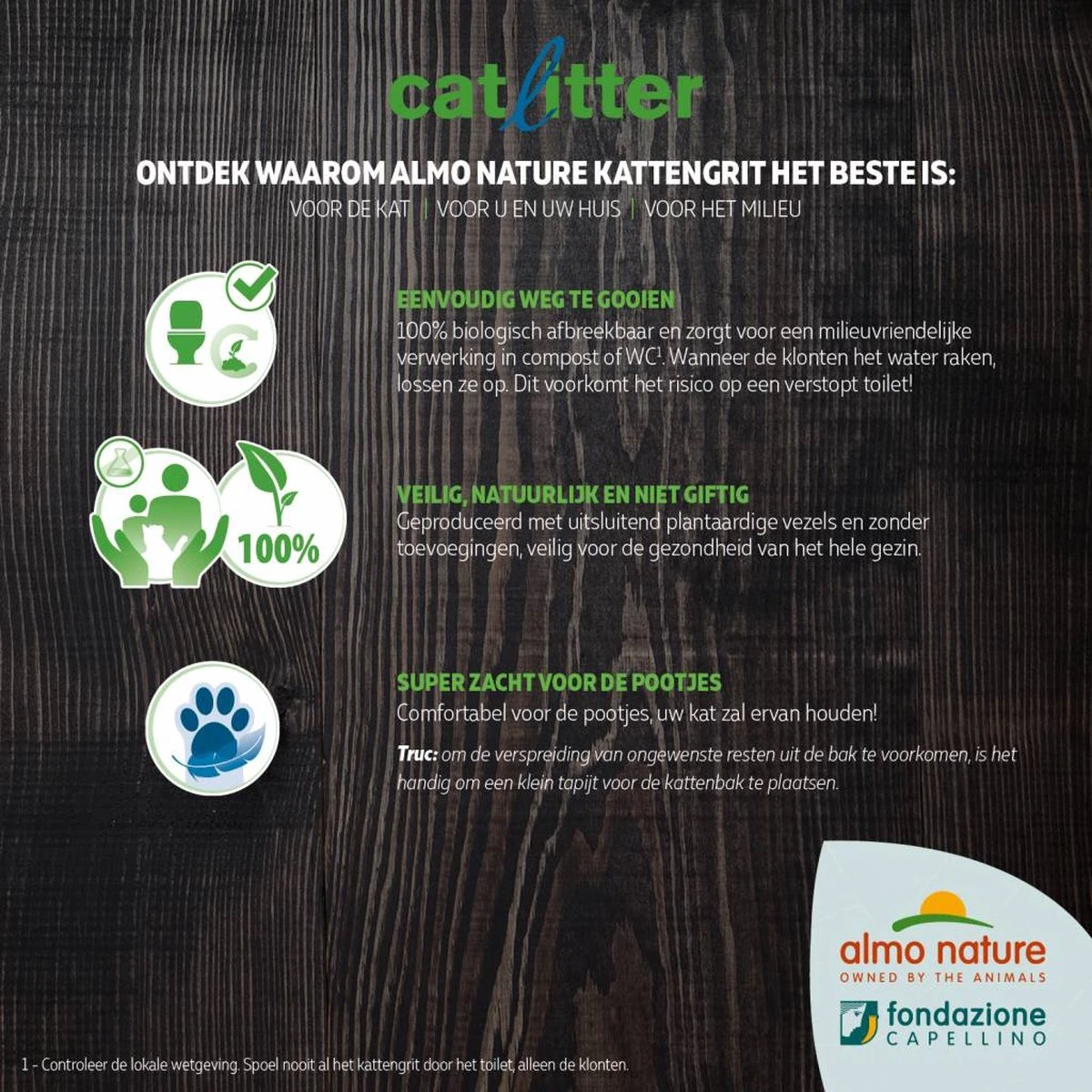 Een basis laag Almo Nature kattengrind van ongeveer 2cm kost slechts 1kg kattenbakgrit. Je hebt slechts 1 kleine zak per 4 weken of 1 grote per 8 weken nodig!*