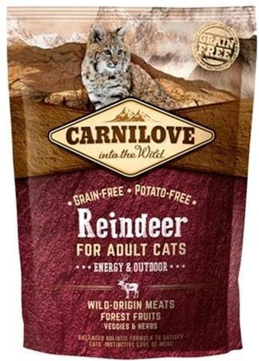 Carnilove Kat Rendier is een complete kattenvoeding voor volwassen katten. De voeding is uitermate geschikt voor de buitenkat en voor katten die een beetje extra energie nodig hebben. De voeding is graanvrij & aardappelvrij.