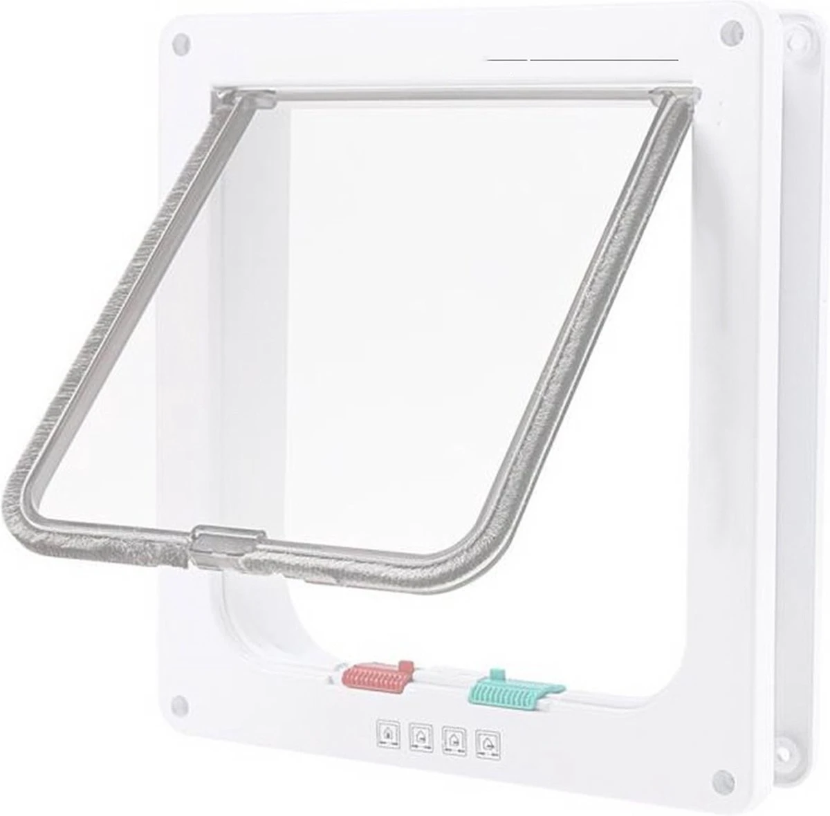 Het kattenluik beschikt over 4 vergendelingsstanden. Zo kun jij altijd makkelijk bepalen wanneer je kat naar binnen of naar buiten mag. En weet je dus zeker wanneer je kat binnen is en hoef je niet te gaan zoeken naar je kat voordat je naar bed gaat. Je kunt kiezen tussen:alleen naar binnen, alleen naar buiten, volledig dicht of volledig open.