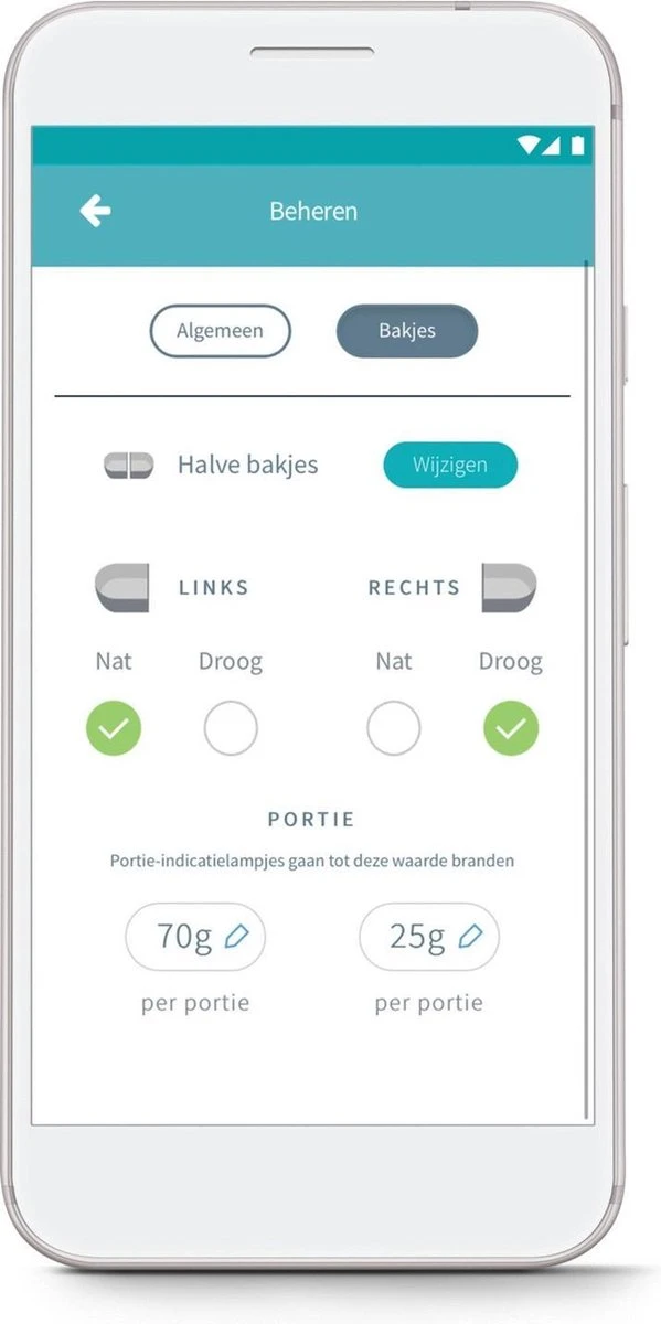 De Voerbak Connect heeft een app (Sure Petcare App) die je kunt downloaden voor je mobiele telefoon, met deze app kan je vervolgens contact maken met de Hub van Sure Petcare. Met deze app kan je in de gaten houden hoeveel en hoe vaak je kat eet. Zo kan je veranderingen in het eetpatroon snel opmerken. Ook heeft deze variant geïntegreerde weegschalen zodat je het voer tot 1 gram nauwkeurig kunt afwegen. De LED-lampjes geven aan wanneer de juiste hoeveelheid in het bakje zit.